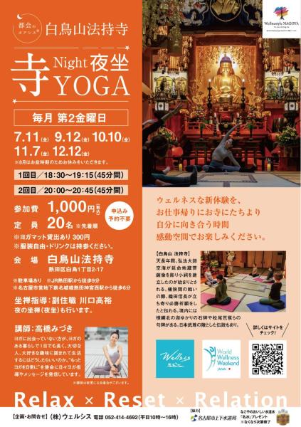 ~名古屋市熱田区・白鳥山法持寺~都会のオアシス🄬【寺NIGHT YOGA&夜坐】
