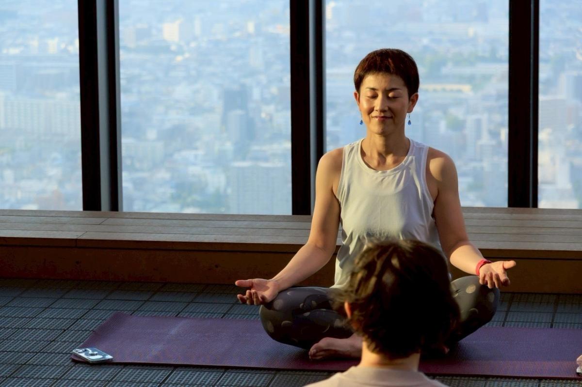 地上約220メートルの屋外展望台“屋外展望台スカイプロムナード”にて、サンセットを眺望しながらの「ヨガ」を開催します。