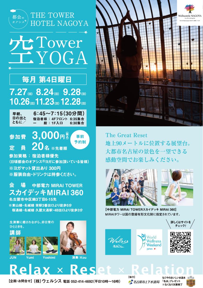 名古屋のシンボルタワーでもある中部電力MIRAI TOWERにて、早朝日の出とともに心と体を整え解放するウェルネスなイベントです。