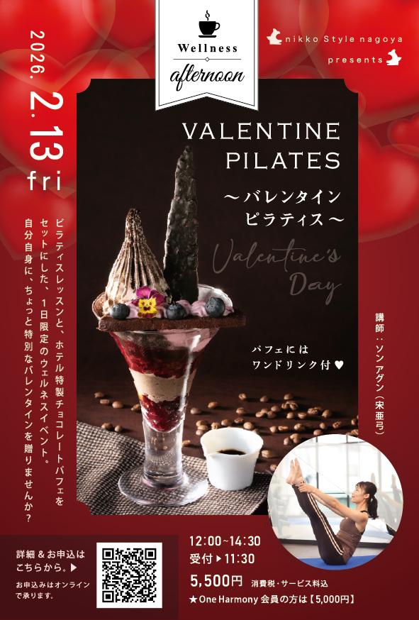 名古屋随一のライフスタイルホテル「ニッコースタイル名古屋」では、2026年2月13日(金)日中に『バレンタインピラティス』を開催いたします。“自分に贈るバレンタイン”をテーマに、約50分間のマットピラティスのグループレッスンと特製チョコレートパフェをセットにした1日限りのイベントです。