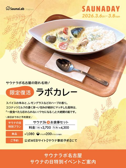 ・知る人ぞ知るラボカレーが3日間だけ限定復活!サウナとのセットプランもオススメ!