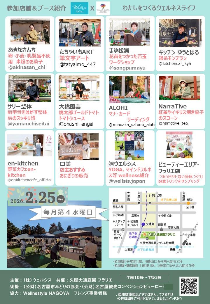 Wellsis Marcheは毎月第4水曜日に久屋大通庭園フラリエで定期開催する予定です。