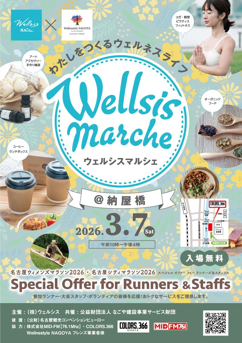 WellsisMarche@納屋橋」をランナーならびにスタッフ皆様の応援イベントとして位置づけ、ウェルネスの関連商品や提供するサービスを知っていただき、利用、体験、体感してもらう機会の場として名古屋の観光を盛り上げます。