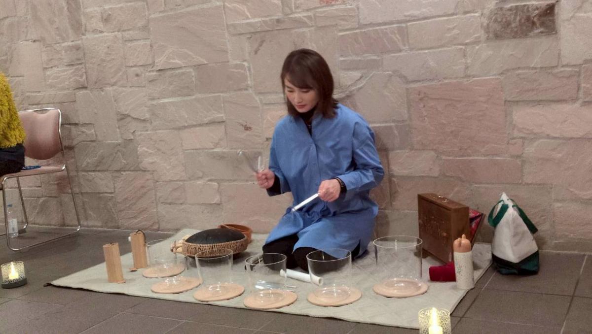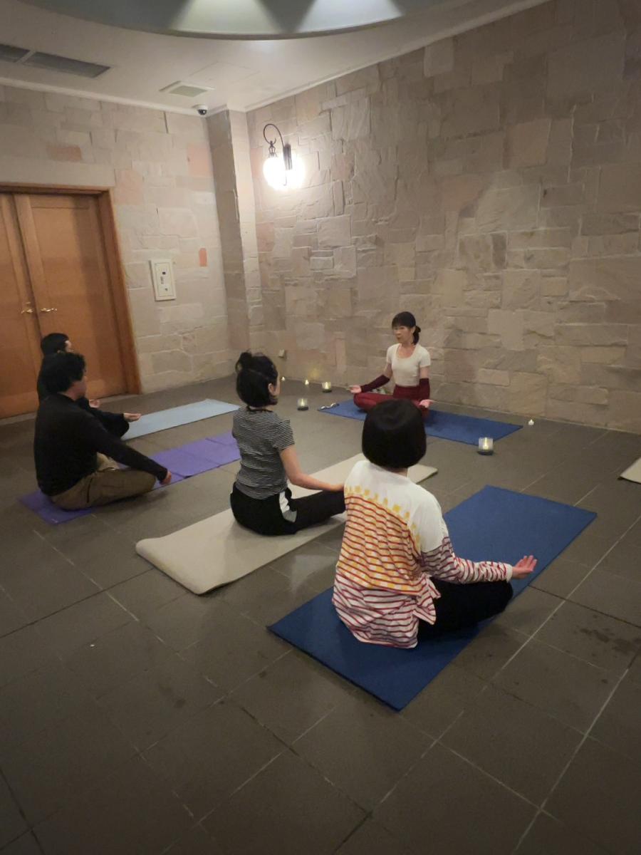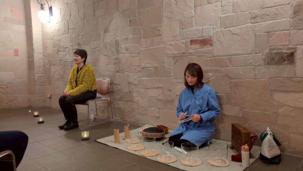YOGAで体を整えた後、マインドフルネス×サウンド・バスの演奏と共に心身共にリラックスタイム。