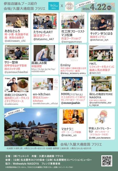 またこのマルシェは“Wellnestyle NAGOYAフレンズ事業者”による都市型ウェルネスツーリズム次世代観光プロジェクトの一環として、公園の利活用・観光誘致を推進することを目的に地域事業者の皆様と一緒に共感・作り上げるイベントです。